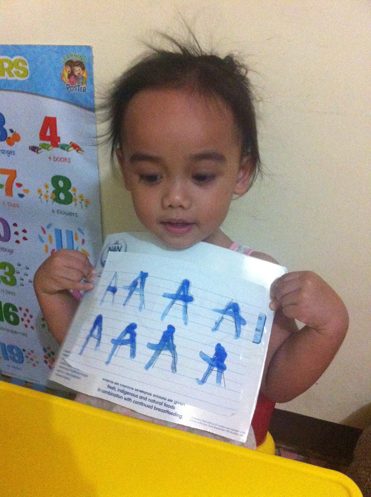 Since my little girl loves to watch those clay surprise videos on Youtube, I made a similar activity for her. I hid objects that either starts with letter A or B inside the clay. Let her open it one by one. I will then ask what's the object inside. Example, Baby. I will ask her "buh buh (while pointing on letter B) baby?" or "ah ah (while pointing on letter A) aby?" In that way she will be able to know the difference of the sound of the two letters.
